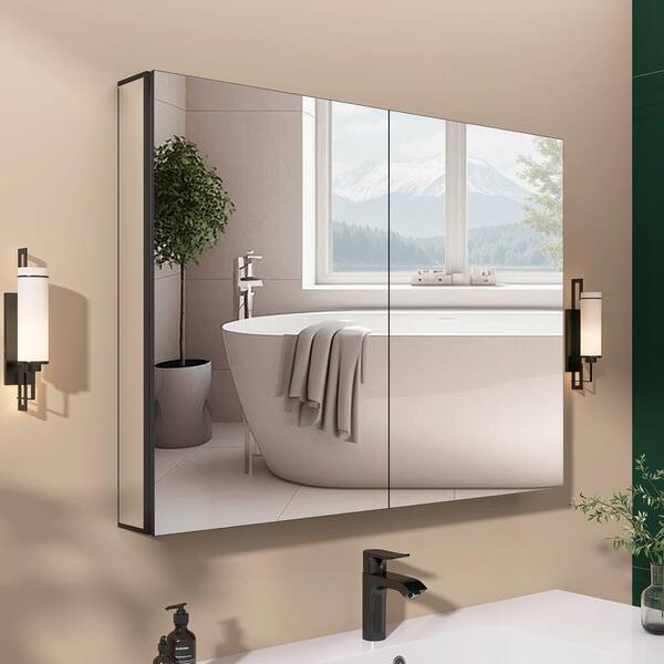 Nox 40 in. W x 30 in. H Rectangular Aluminum Medicine Cabinet with Mirrors for Bathroom Recessed or Surface Mount