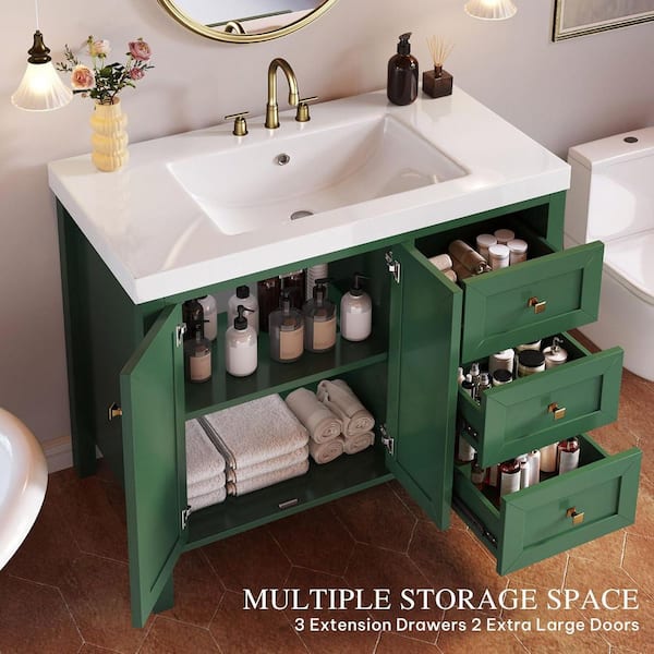 Unassembled 42 in. Bath Vanity Cabinet without Top in Green with 3-Left Drawers 2 Right-Door Soft Closing Floor Cabinet