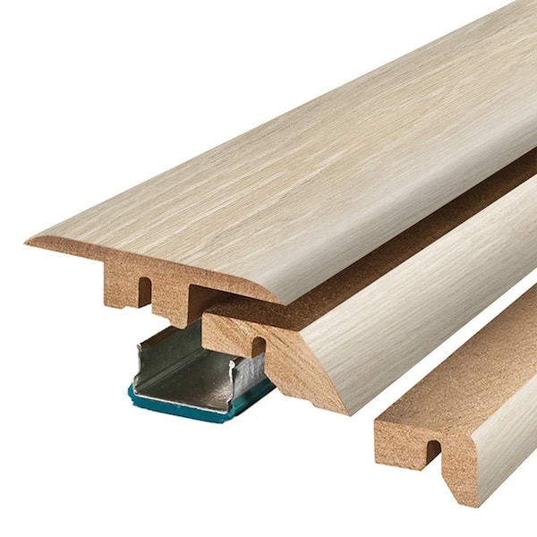 Ghost White 0.75 in. T x 2.37 in. W x 78.7 in. L Textured Wood Look Laminate Moulding/Trim 4 in 1 Molding