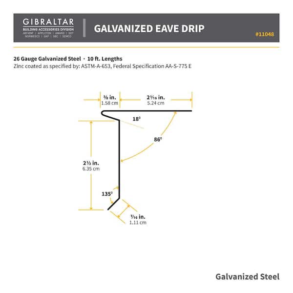 2-1/16 in. x 2-1/2 in. x 10 ft. 26-Gauge Galvanized Steel Eave Drip Flashing