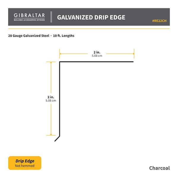 2 in. x 2 in. x 10 ft. Galvanized Steel Roof Edge Flashing Charcoal