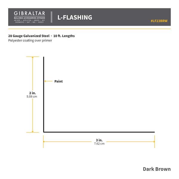 2 in. x 3 in. x 10 ft. Galvanized Steel 90° L Flashing in Dark Brown