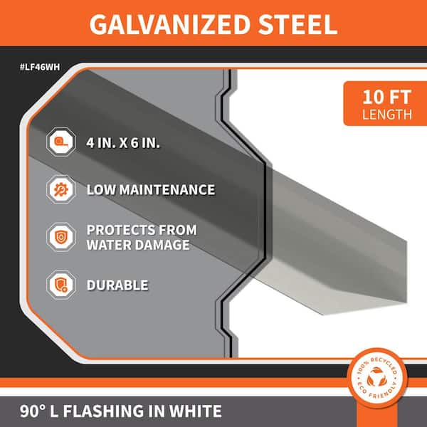 4 in. x 6 in. x 10 ft. Galvanized Steel 90° L Flashing in White