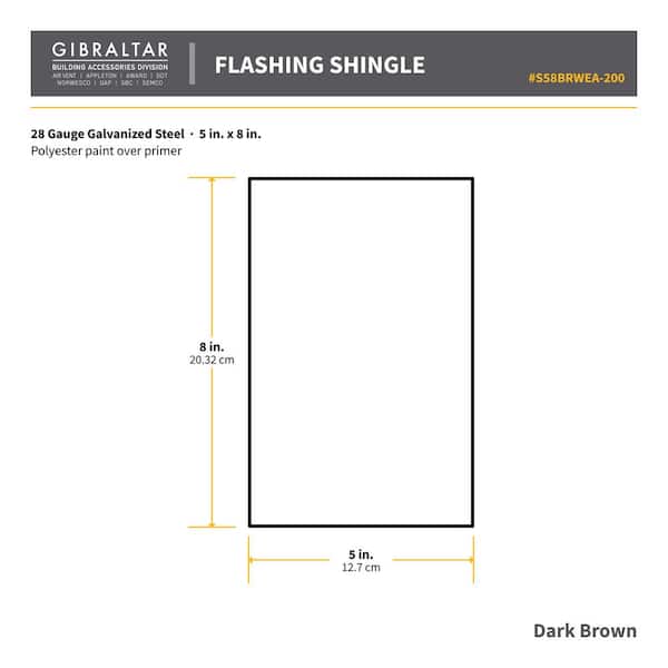 5 in. x 8 in. Galvanized Steel Flashing Shingle in Dark Brown
