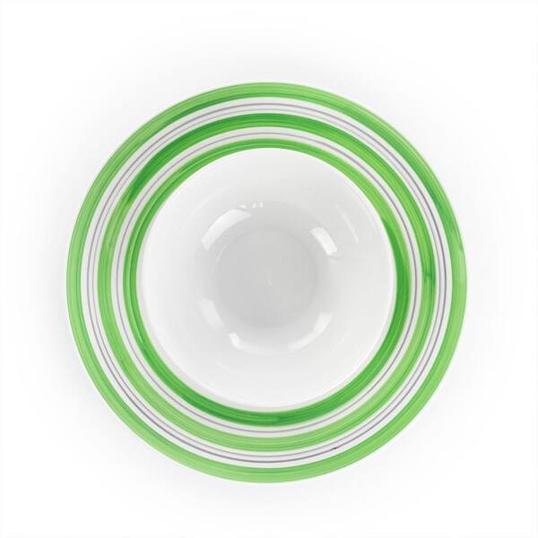 Sunset Stripes 12-Piece Green Round Fine Ceramic Dinnerware Set