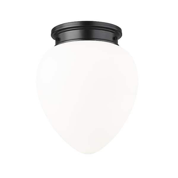 Gideon 12.5 in. Matte Black Flush Mount with Etched Opal Glass Shade with No Bulb Included