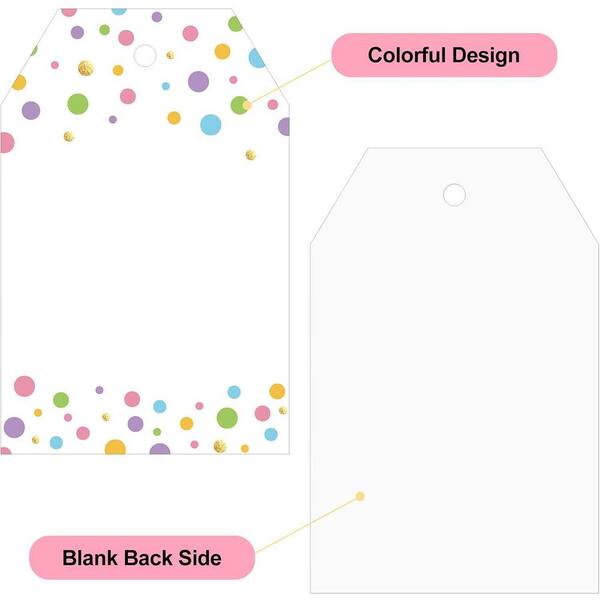 Gift Tags with String Colorful Confetti Polka Dot Personalized White Blank Hang Paper Label 100Pcs