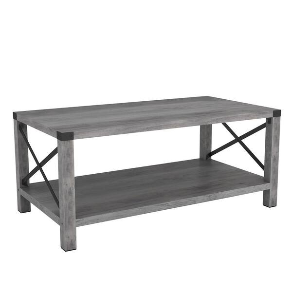 Giltner 41 in. Gray Rectangle Particle Board Coffee Table with Shelf