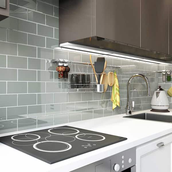 3 in. x 6 in. x 8 mm True Gray Glass Subway Tile Sample