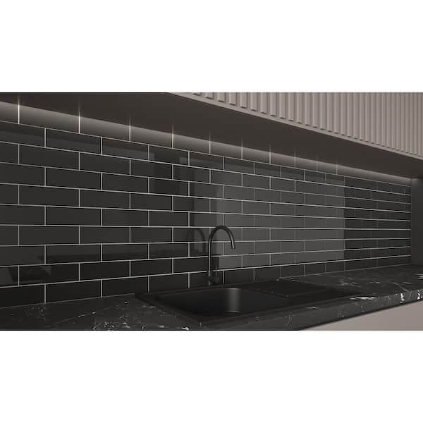Black 3 in. x 9 in. Glass Subway Wall Tile Sample