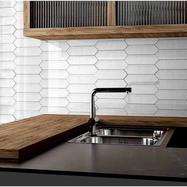 Ceramic Picket Hexagon Subway 3"x 12"x 10mm Wall Tile Sample - White (1 Tile PC/Each)