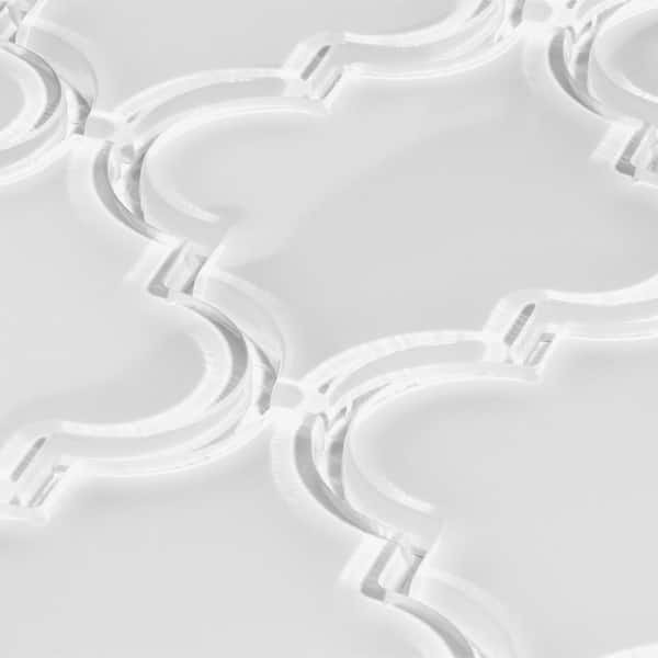 Glass Arabesque Mosaic Tile - Bright White 3 in. x 4 in. x 8mm Tile Sample