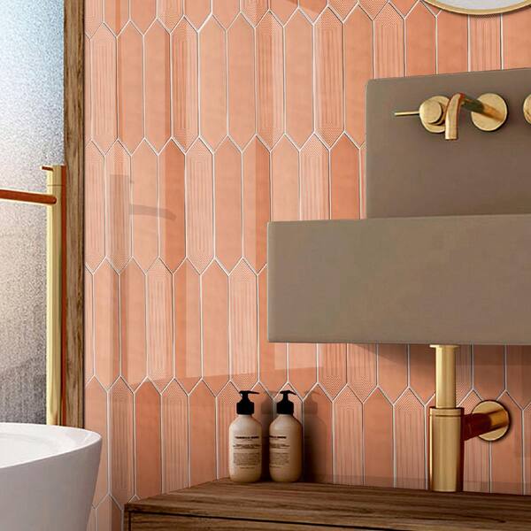 Glossy Ceramic Decor Picket Hexagon Subway 3 in. x 12 in. x 10 mm Wall Tile Case - Coral (20-Tile Pieces/5 sq. ft.)