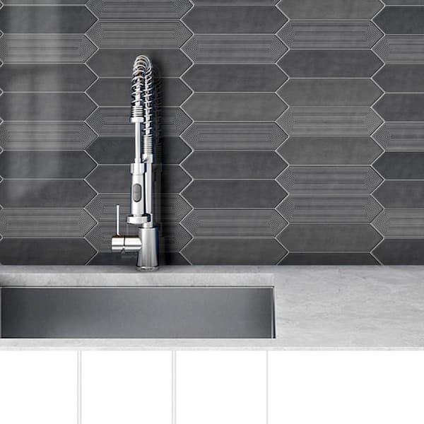 Glossy Ceramic Decor Picket Hexagon Subway 3 in. x 12 in. x 10 mm Wall Tile Case - Shadow (20-Tile Pieces/5 sq. ft.)