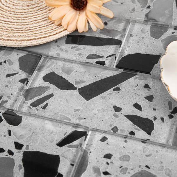 Silver Moonstone 3 in. x 6 in. x 8mm Glass Subway Tile Sample