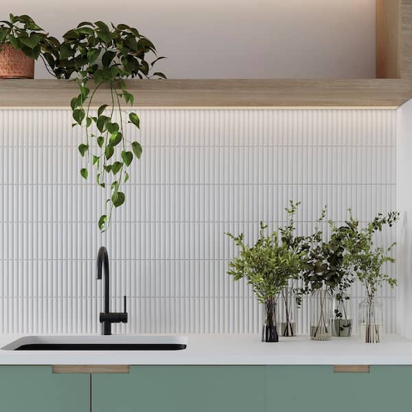 Spanish Lingot 12 in. x 24 in. x 9mm 3D Glazed Fluted Porcelain Wall Tile Case-White (5 Piece, 10.76 Sq. Ft. / Case)