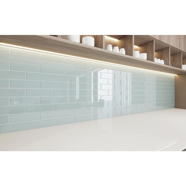 Subway Baby Blue 3 in. x 9 in. Glass Tile Sample