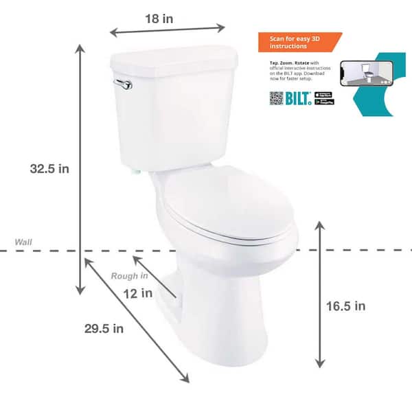 12 in. Rough In 2-Piece 1.28 GPF Single Flush Elongated Toilet in White Seat Included