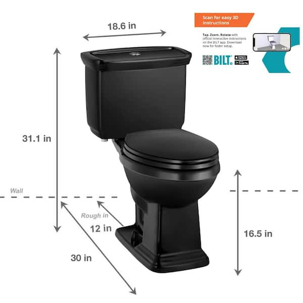 12 inch Rough In Two-Piece 1.0 GPF/1.28 GPF Dual Flush Elongated Toilet in Black Seat Included
