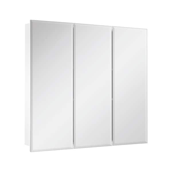 30.4 in. W x 30.2 in. H Rectangular Medicine Cabinet with Mirror in White with Adjustable Shelves