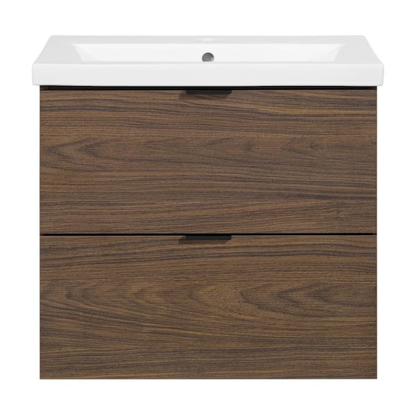 Ardwick 24 in. Single Sink Mocha Walnut Bath Vanity with White Ceramic Top (Assembled)