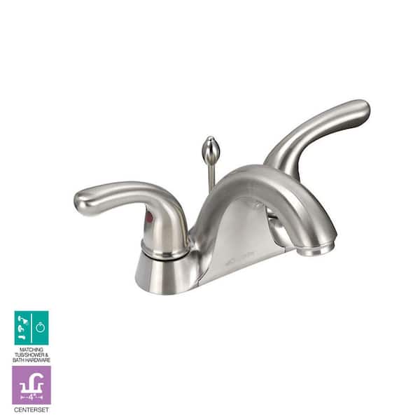 Builders 4 in. Centerset 2-Handle Low-Arc Bathroom Faucet in Brushed Nickel