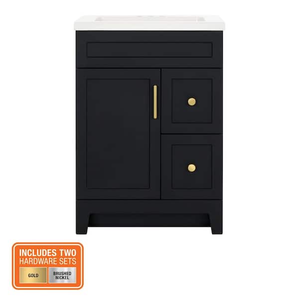 Chasbury 25 in. Single Sink Matte Black Bath Vanity with White Cultured Marble Top (Assembled)
