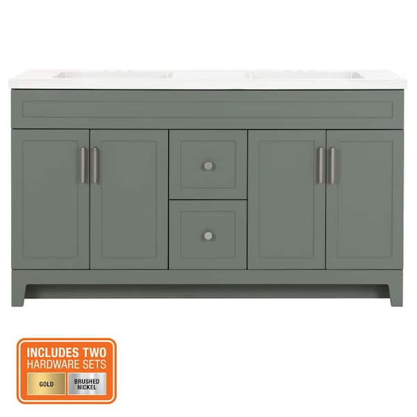 Chasbury 61 in. Double Sink Palm Green Bath Vanity with White Cultured Marble Top (Assembled)