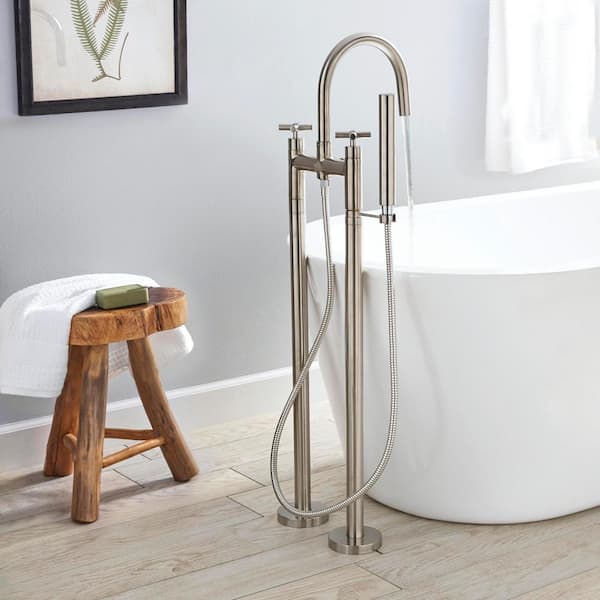 Danay 2-Pipe 2-Handle Freestanding Floor Mount Roman Tub Faucet with Handheld Handshower in Brushed Nickel