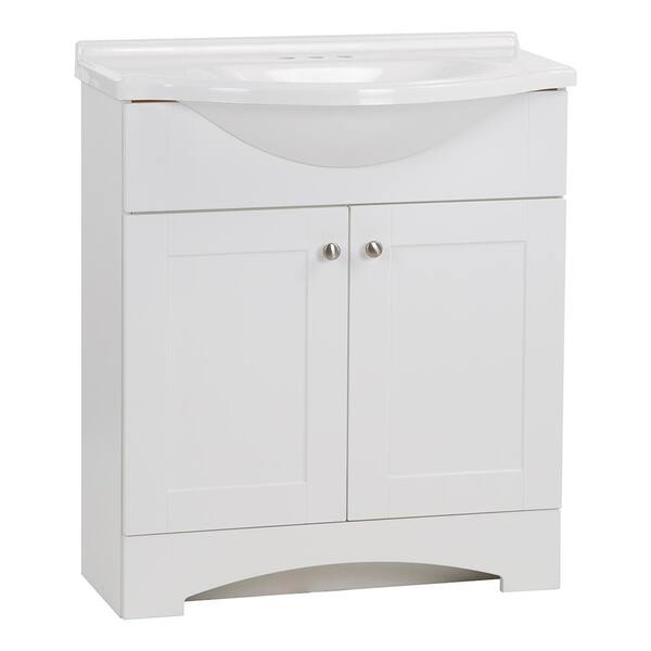 Del Mar 31 in. W x 19 in. D x 37 in. H Single Sink Freestanding Bath Vanity in White with White Cultured Marble Top