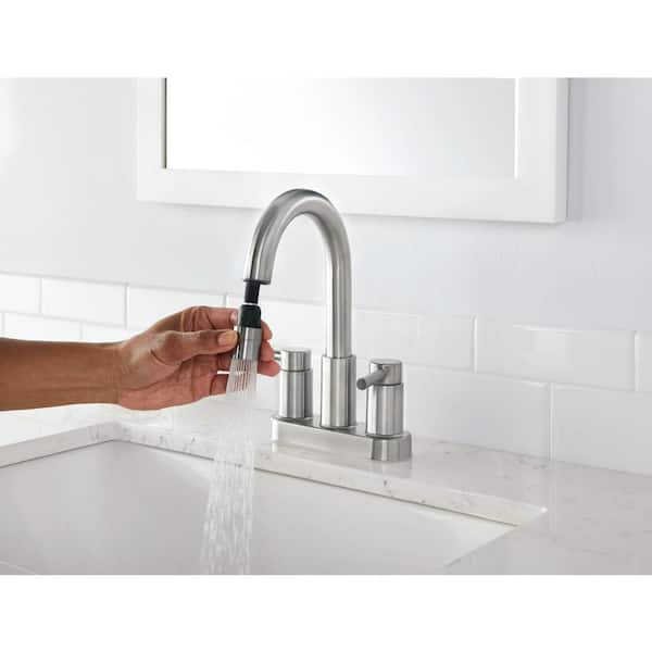 Dorind 4 in. Centerset Double-Handle Pull Down Bathroom Faucet in Brushed Nickel