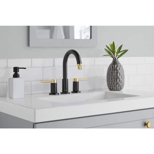 Dorind 8 in. Widespread Double-Handle Pull Down Bathroom Faucet in Matte Black and Matte Gold