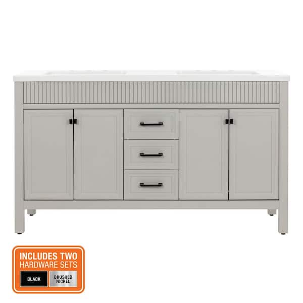 Foxglade 61 in. Double Sink Light Gray Bath Vanity with White Cultured Marble Top (Assembled)