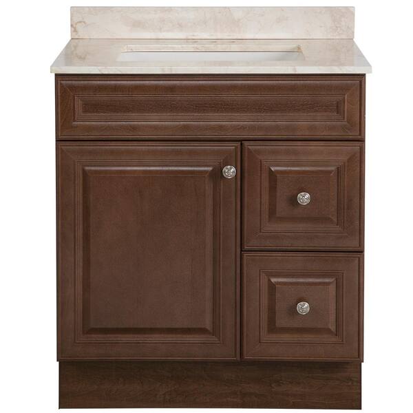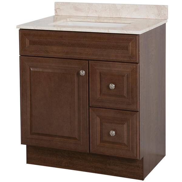 Glensford 31 in. W x 22 in. D Bathroom Vanity in Butterscotch with Stone Effects Vanity Top in Dune with White Sink