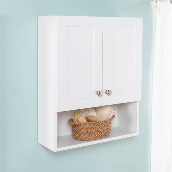 Lancaster 21 in. W x 8 in. D x 26 in. H Surface-Mount Shaker Bathroom Storage Wall Cabinet in White