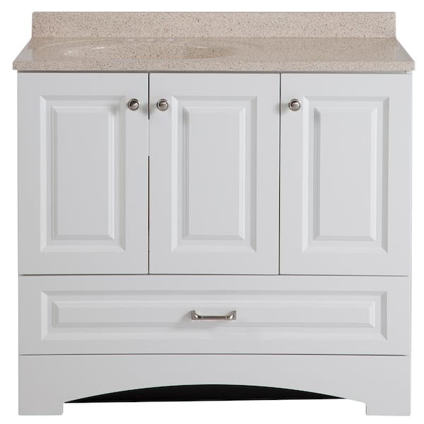 Lancaster 36.5 in. W x 18.63 in. D x 35.4 in. H Single Sink Bath Vanity in White Maui Cultured Marble Top