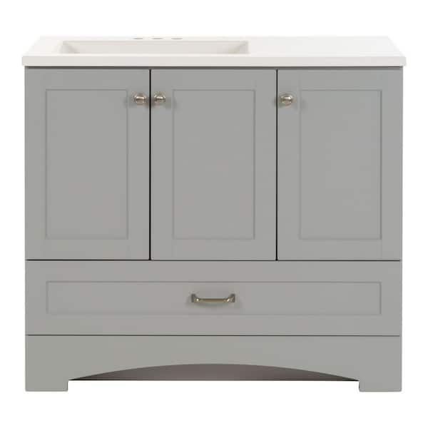 Lancaster 37 in. Single Sink Pearl Gray Bath Vanity with White Cultured Marble Top (Assembled)