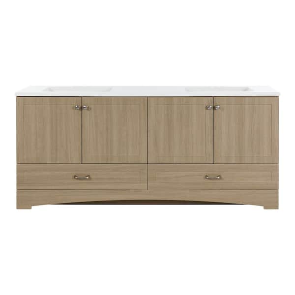Lancaster 73 in. Double Sink Beige Oak Bath Vanity with White Cultured Marble Top (Assembled)