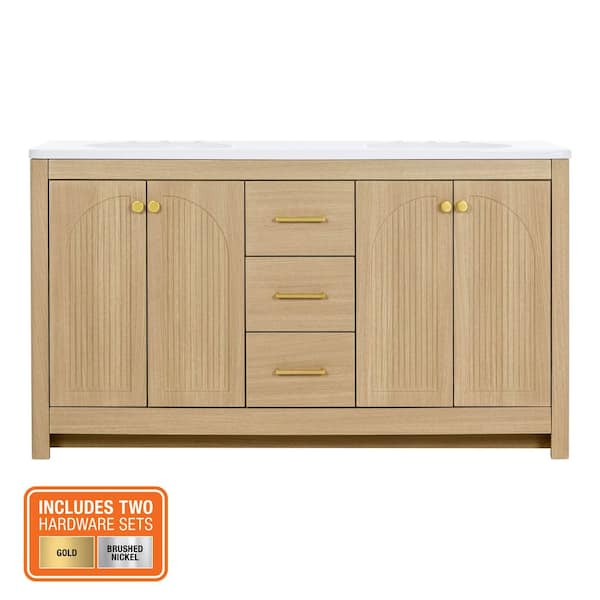 Lapine 61 in. Double Sink Blond Oak Bath Vanity with White Cultured Marble Top (Assembled)