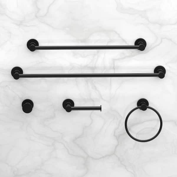 Lucien 3-Piece Bath Hardware Set with Towel Bar Paper Holder Towel Ring in Matte Black