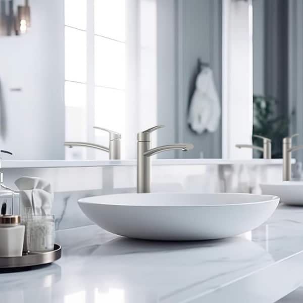 Lynstone Single Handle Vessel Sink Faucet with Pop-Up Drain in Brushed Nickel