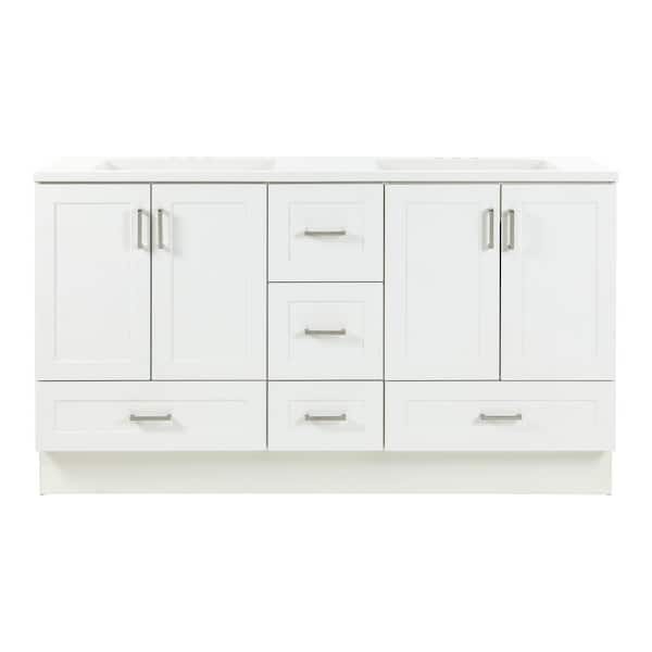 Maybell 61 in. Double Sink White Bath Vanity with White Cultured Marble Top (Assembled)