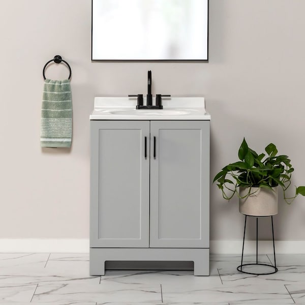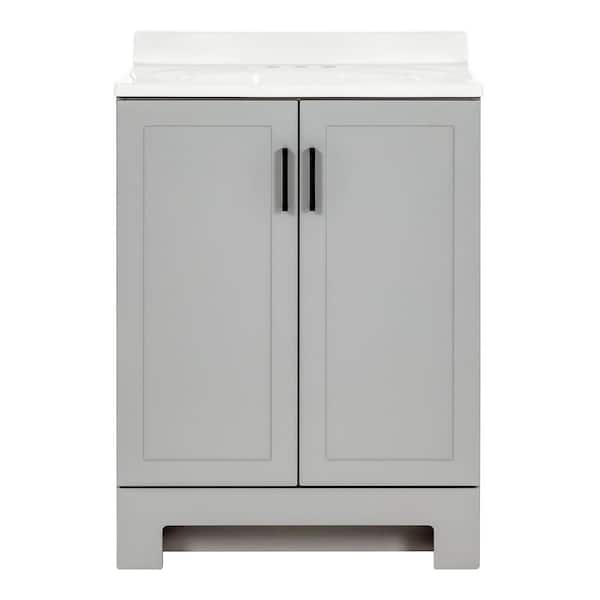 Oakley 25 in. Single Sink Pearl Gray Bath Vanity with White Cultured Marble Top (Assembled)