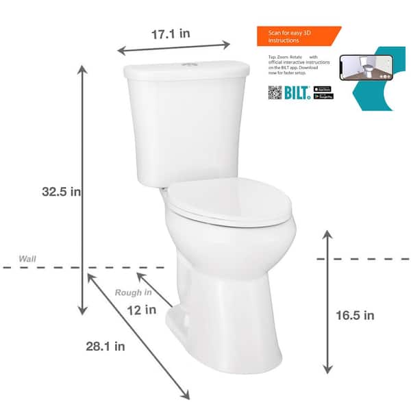 Power Flush 12 in. Rough in 2-Piece 0.95 GPF/1.28 GPF Dual Flush Elongated Toilet in White with Slow-Close Seat Included