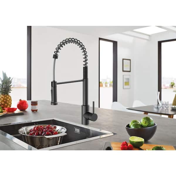 Single-Handle Spring Pull Down Sprayer Kitchen Faucet in Matte Black