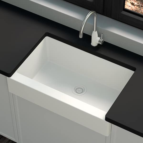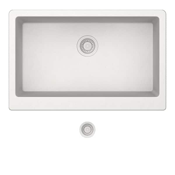 Stonehaven 33 in. Farmhouse White Ice Granite Composite Single Bowl Apron Front Kitchen Sink with White Ice Strainer