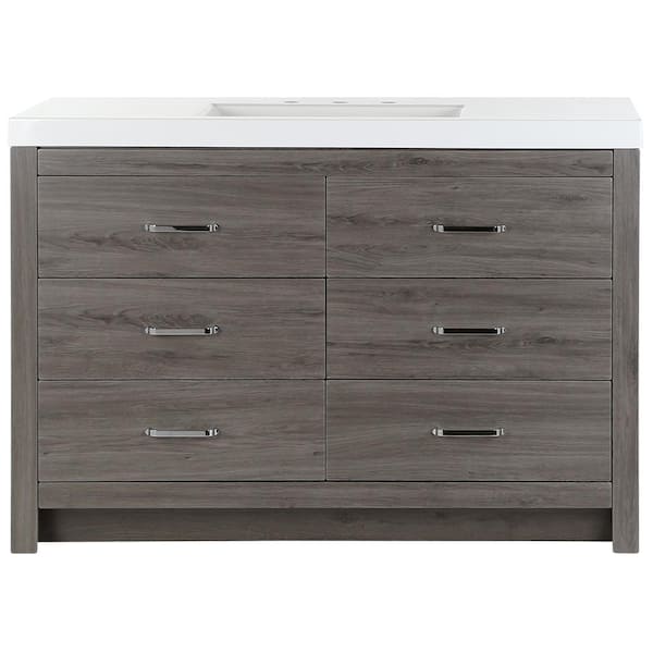 Woodbrook 49 in. Single Sink Dark Oak Bath Vanity with White Cultured Marble Top (Assembled)