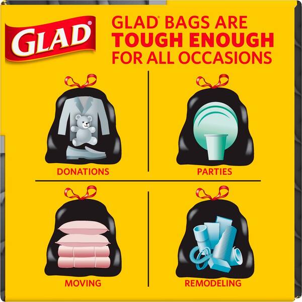 Glad 30 Gal. trash bag size perfect for the yard or outdoor use
