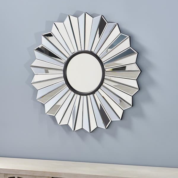 Glam Flower Black 31 in. W Round MDF Wall Accent Mirror Suitable for Living Room, Study, Bathroom, Porch