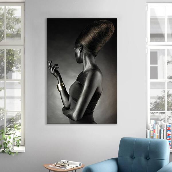 Glamorous Black Series Gray Line Unframed Watercolor Portrait Canvas People Wall Art Print 32 in. x 24 in.